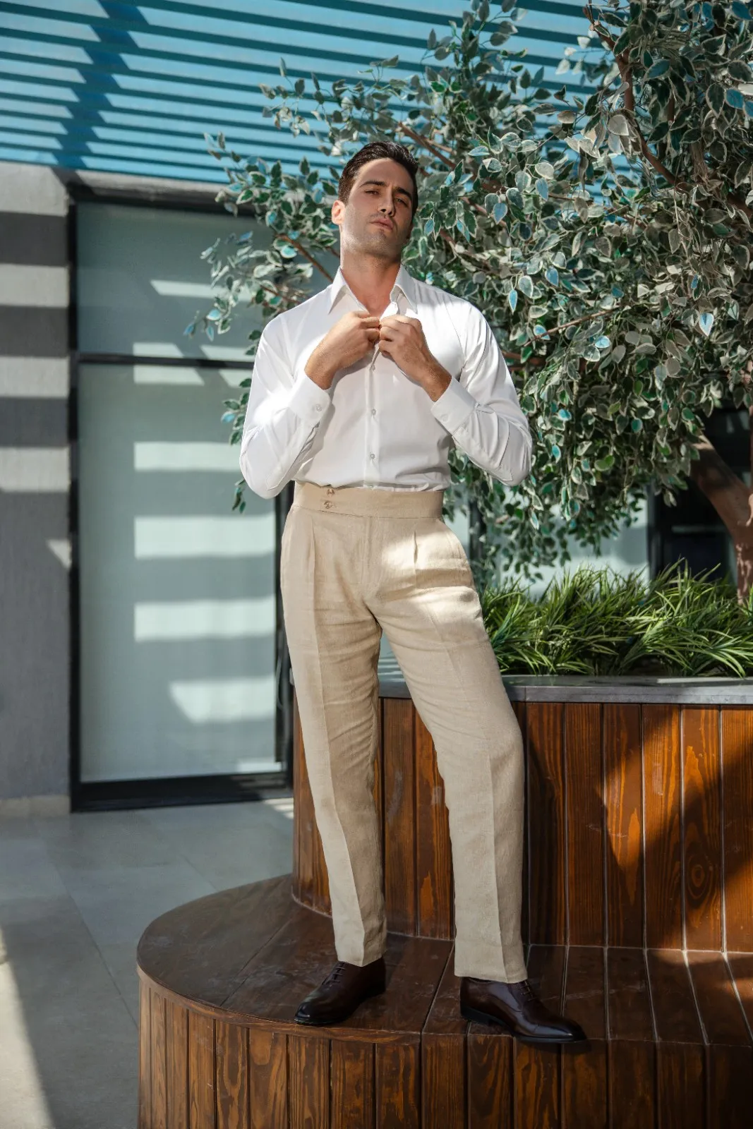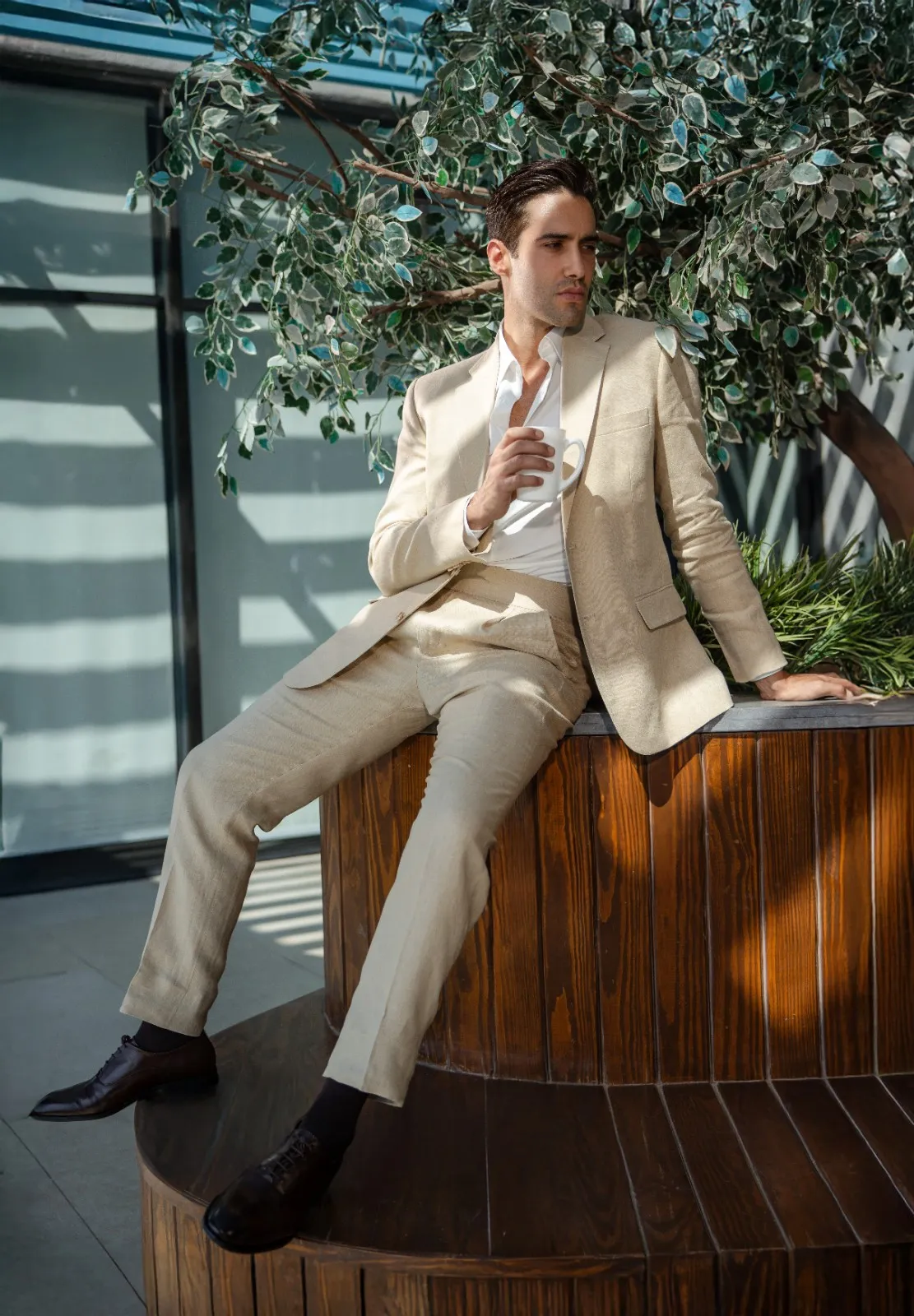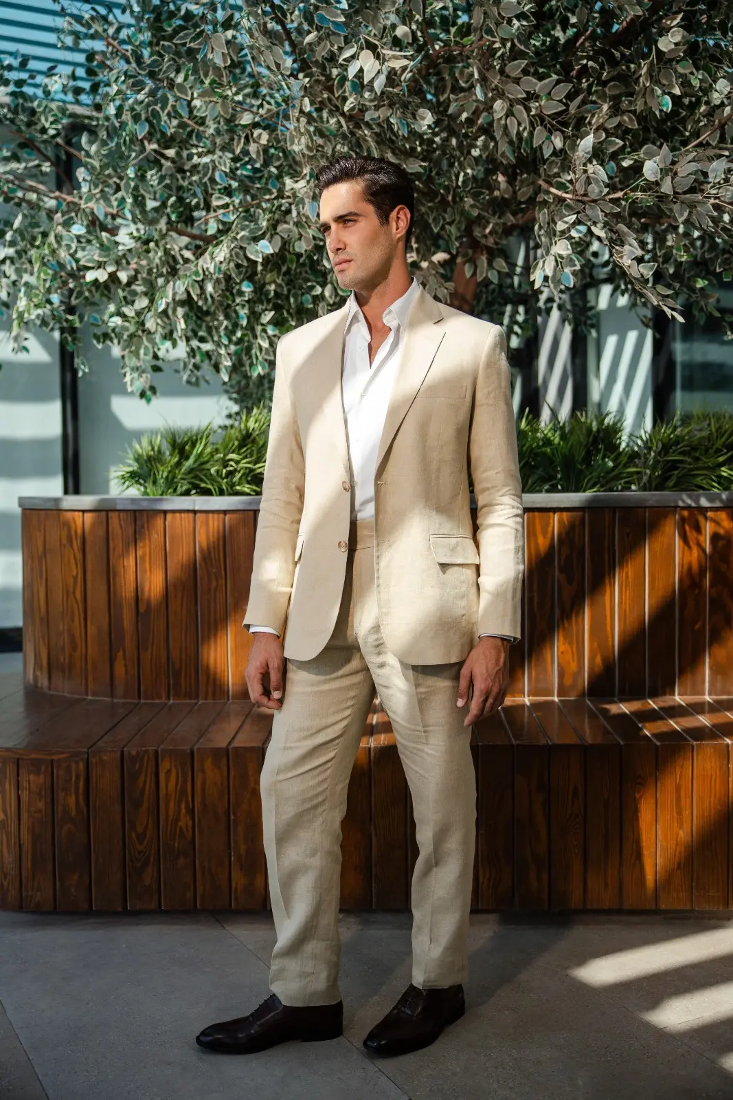 Linen Suit Home New Collection Linen Suit Linen suit Colour Beige Design Notchlabel | Pants Side-button waistband | Double button | Double vent Take a look at our collection