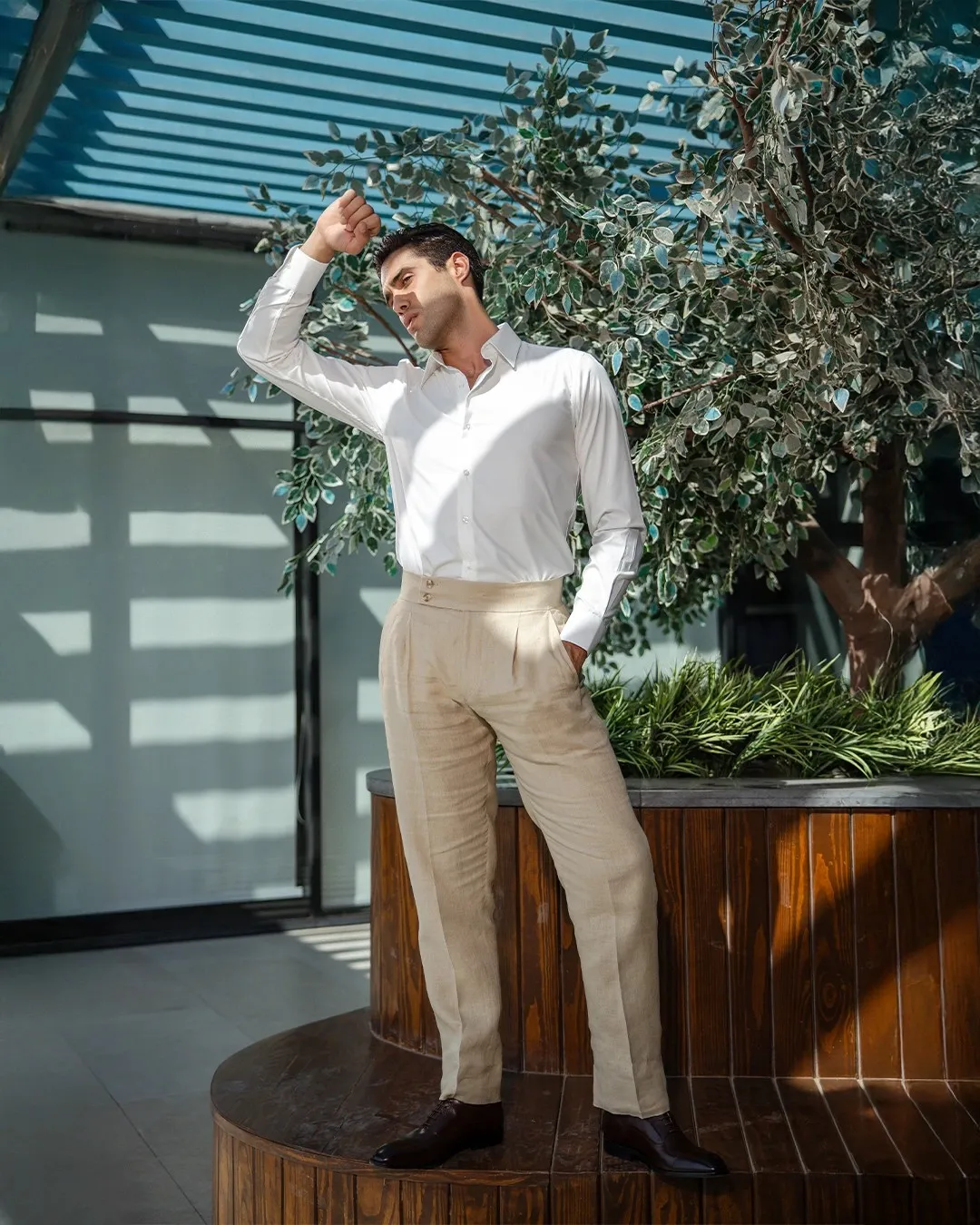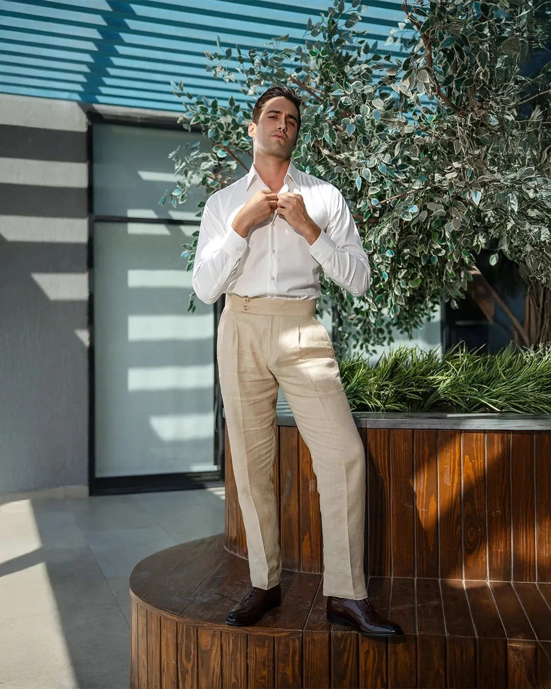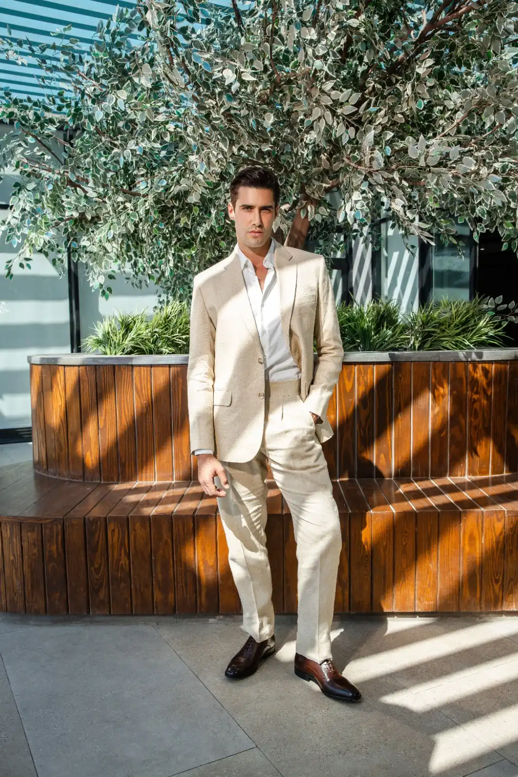 Linen Suit Home New Collection Linen Suit Linen suit Colour Beige Design Notchlabel | Pants Side-button waistband | Double button | Double vent Take a look at our collection