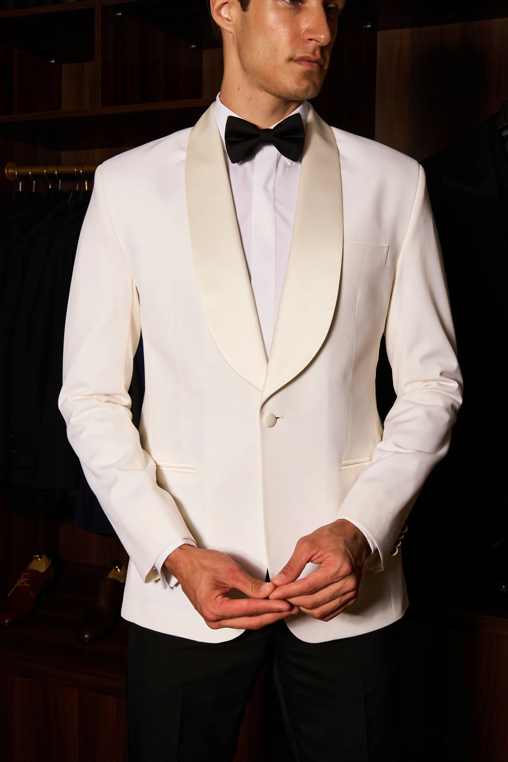 White Fly Shawl Collar Home Suits The Gentleman’s Club White Fly Shawl Collar 01 Fly Shawl Collar Colour White Take a look at our collection The Gentleman’s Club A curated collection of 4 tuxedo looks — where tradition meets modern couture. For the groom who is more than a man… he is a statement. BOOK NOW